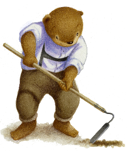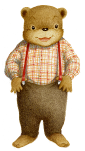 ハーブ村生まれ。茶色くま科のコグマ。食べるの大好き。遊ぶの大好き。妹、弟思いのお兄ちゃん。
