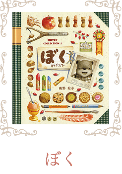 動物をモチーフに生み出したキャラクターから、絵本の世界を知っていただけたらと思います。主人公は子グマのチャイブス。チャイブスを中心に家族とその仲間たちに囲まれた中で展開されていく絵本の世界を楽しんでください。