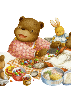 ハーブ村生まれ。茶色くま科のコグマ。食べるの大好き。遊ぶの大好き。妹、弟思いのお兄ちゃん。